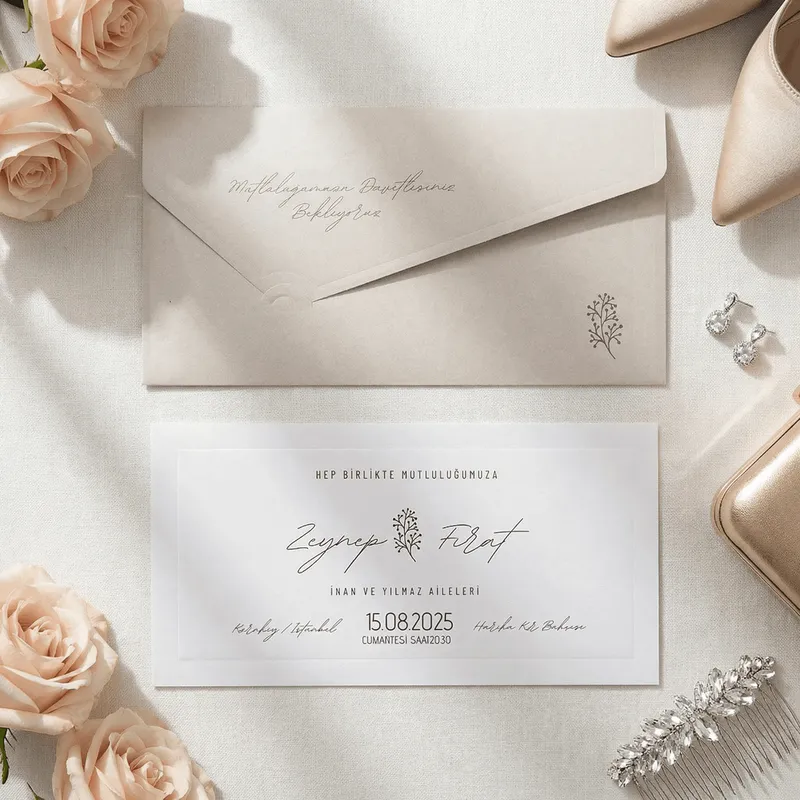 - The invitation is crafted as a set, including the envelope and accessories.