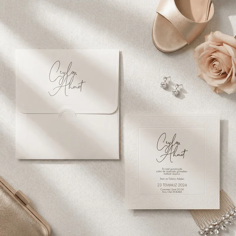 - The invitation is crafted as a set, including the envelope and accessories.
