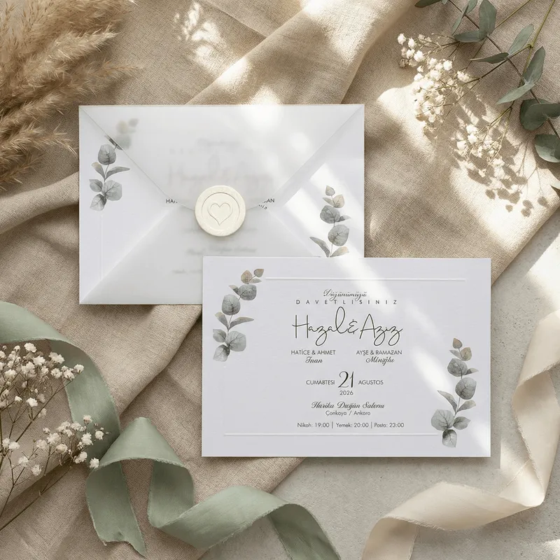 Product Specifications of Eucalyptus Wedding Invitation with Seal