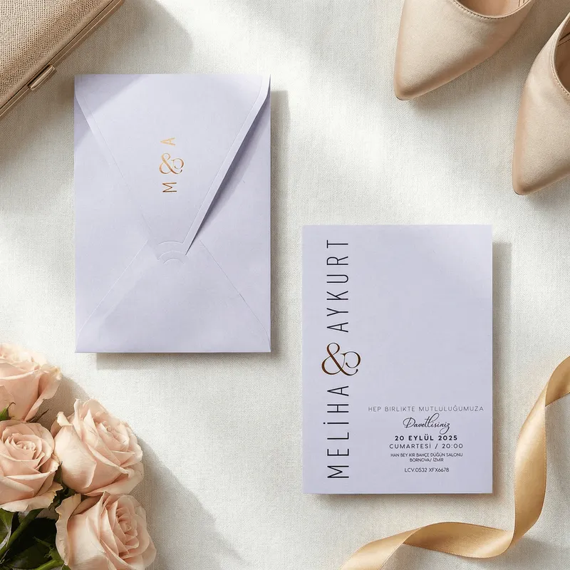 Product Specifications of Lavender Copper Vertical Typography Wedding Invitation